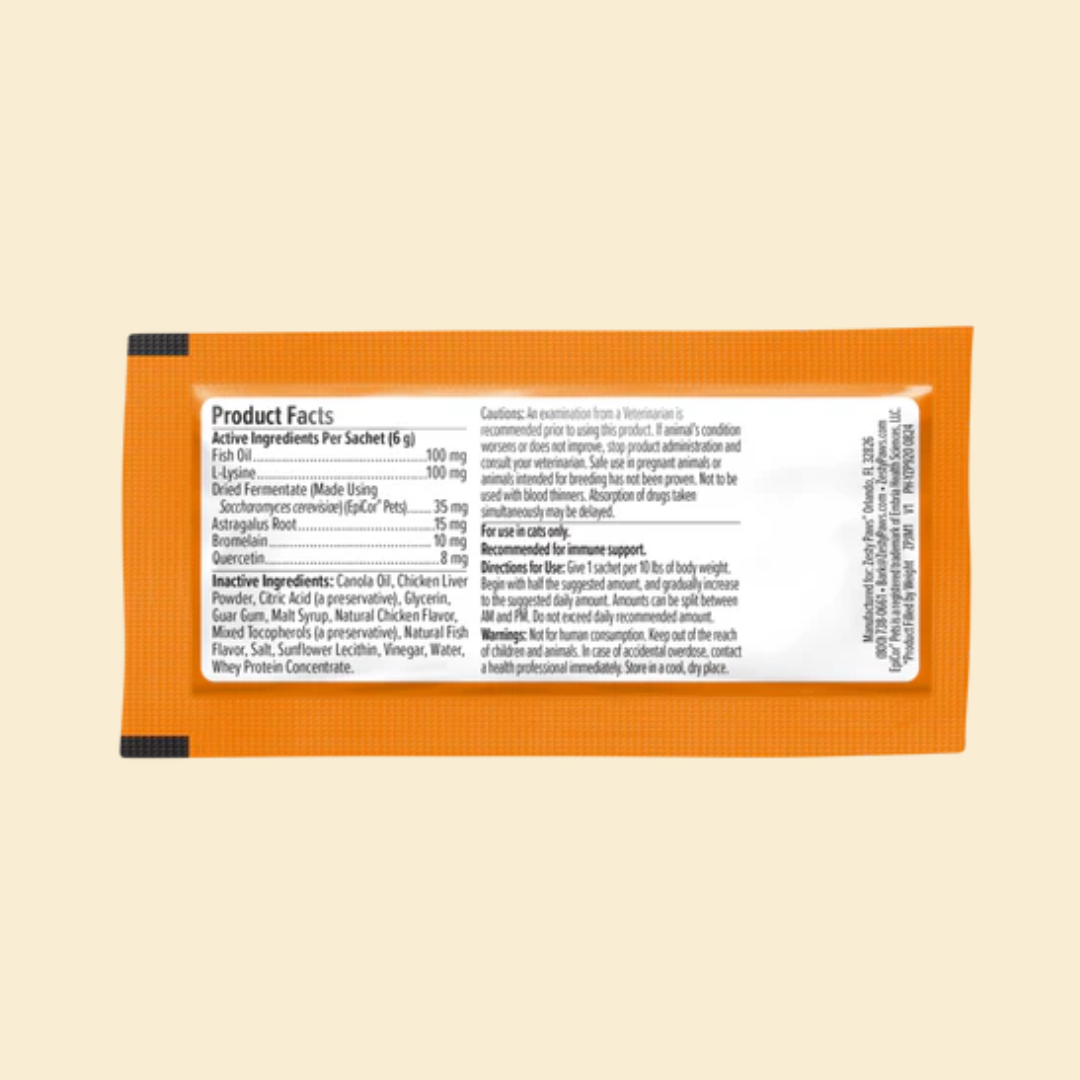 Mousse funcional sabor pollo que apoya el sistema inmunológico y ayuda a controlar alergias estacionales en gatos. Con EpiCor®, aceite de pescado, quercetina, lisina y raíz de astrágalo para fortalecer defensas, mantener piel saludable y equilibrar niveles de histamina. Ideal para gatos de todas las edades.
