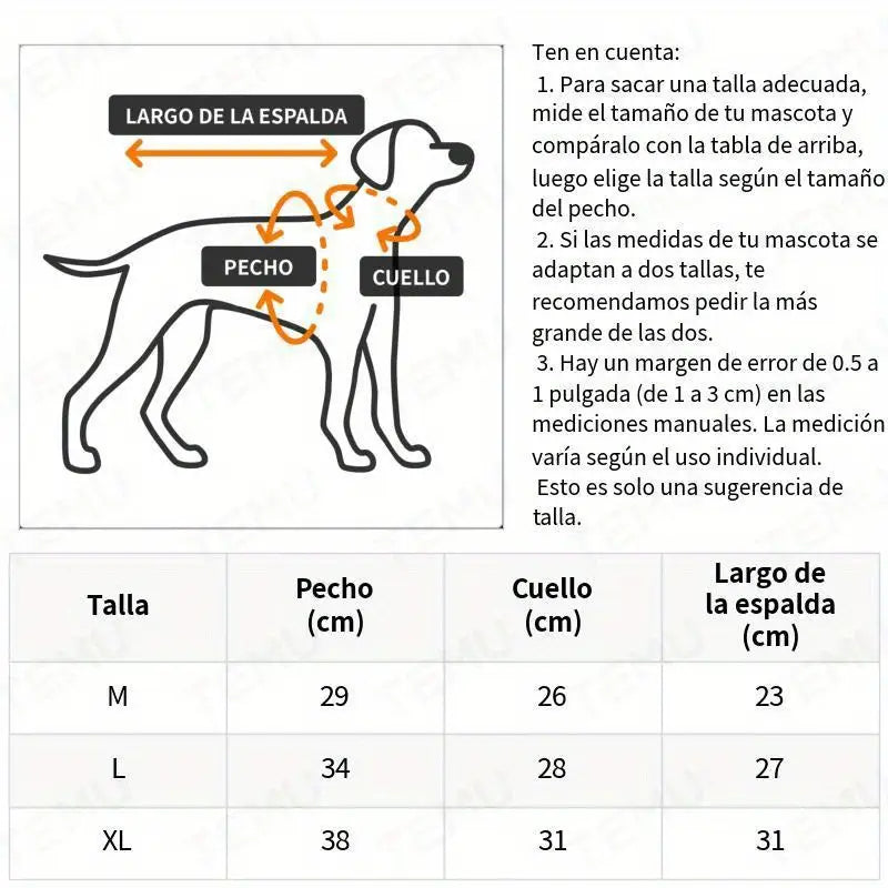 Consulta la guía de tallas en las imágenes del producto. Si tienes dudas sobre cuál elegir, ¡escríbenos y con gusto te ayudamos!🐾