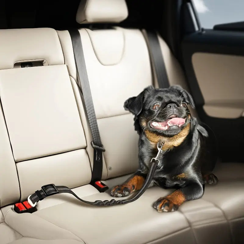 Cinturón de seguridad ajustable para auto, ideal para mantener a tu perrito seguro durante el viaje.