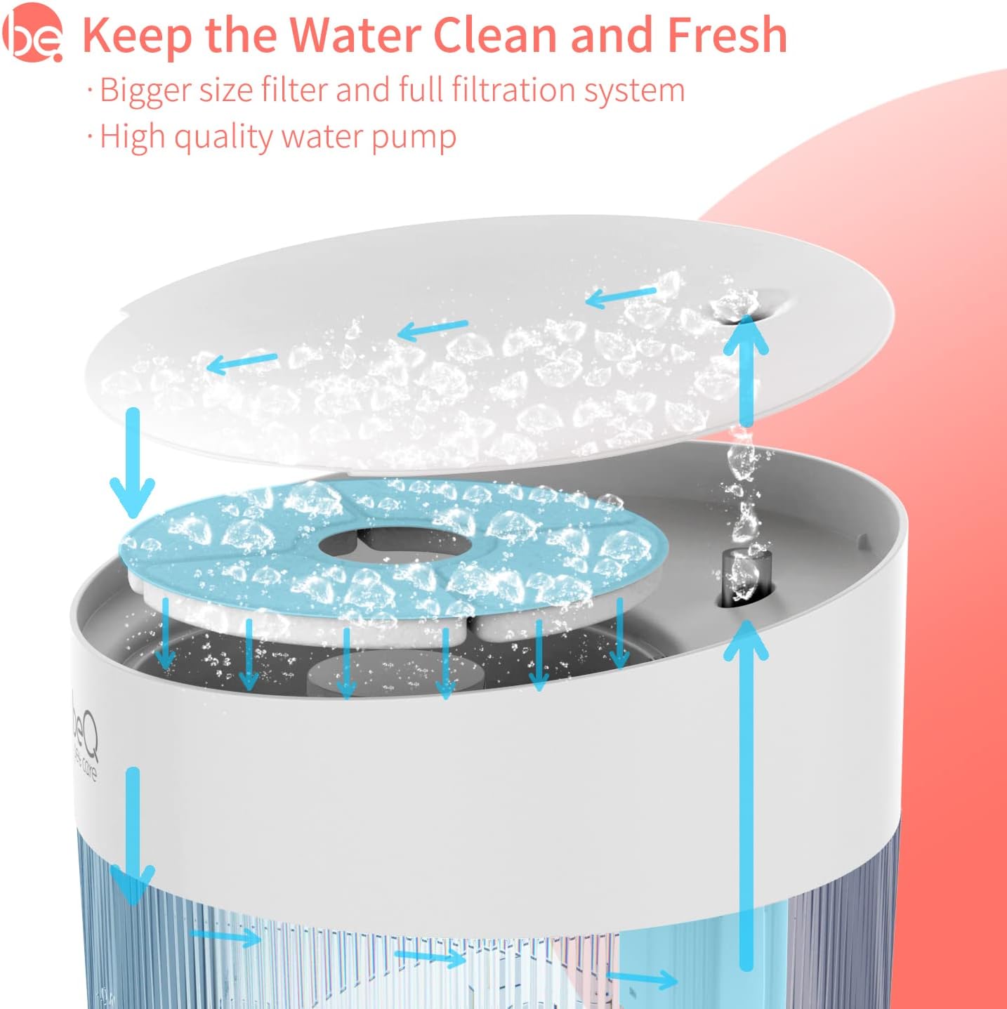 Tu mascota merece agua fresca, limpia y segura en todo momento. 💦 Esta fuente automática beQ combina diseño moderno, filtración triple y luz LED inteligente para garantizar una experiencia de hidratación saludable y sin estrés para ti y tu peludo.