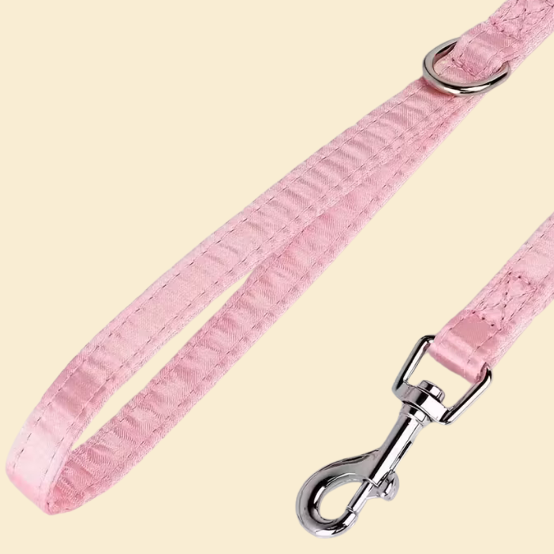 Conjunto de arnés y correa con diseño brillante y moño decorativo, ideal para paseos con perros pequeños y medianos. Suave y cálido, combina estilo y funcionalidad en una sola pieza.