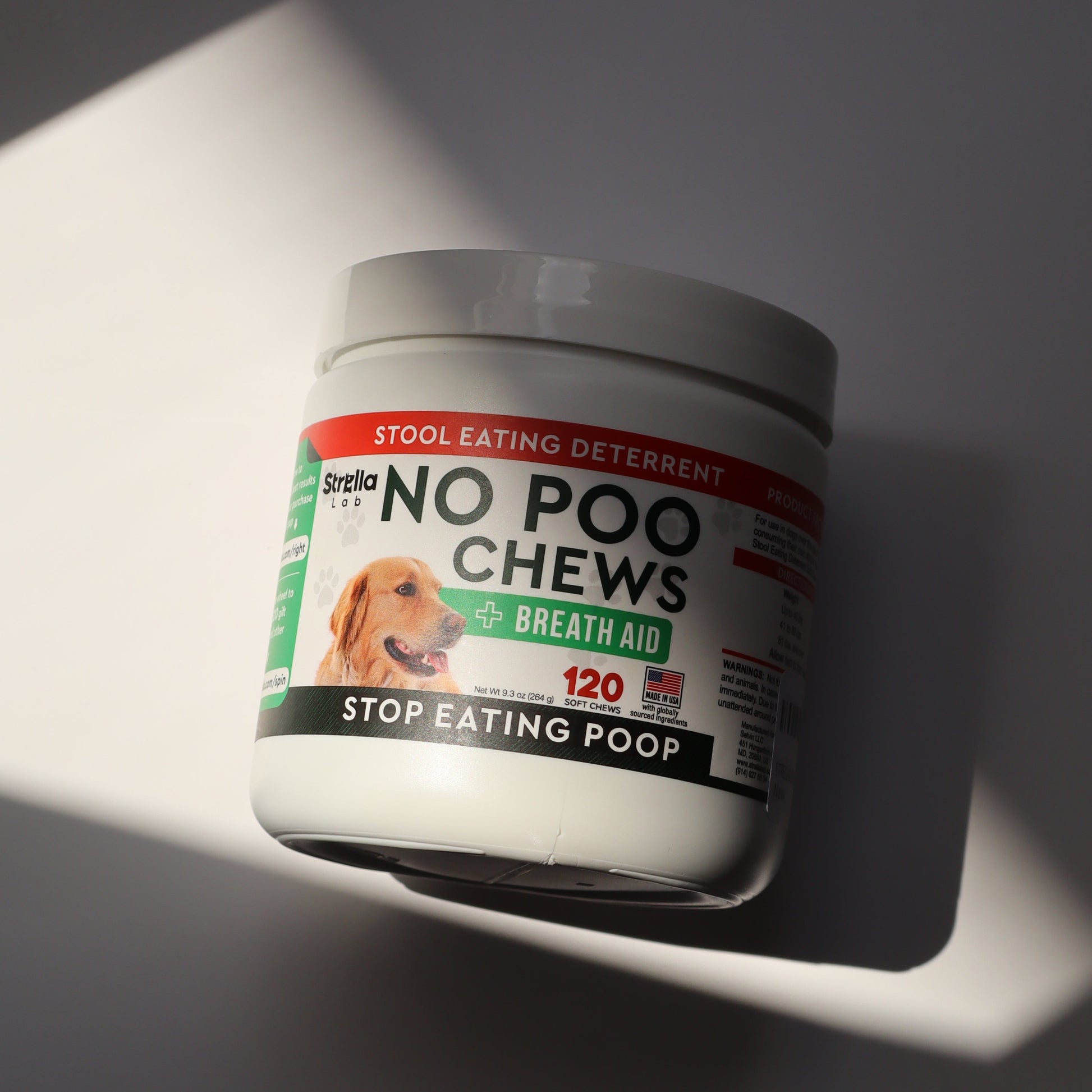 Disuasivo natural en forma de masticables para prevenir la coprofagia (hábito de comer heces), con apoyo digestivo y aliento fresco. Fórmula con yuca, manzanilla, perejil y enzimas digestivas. Sabor a pollo que a tu peludo le encantará.
