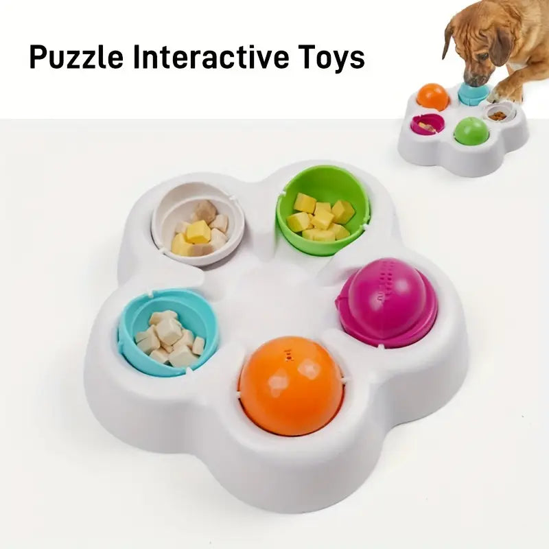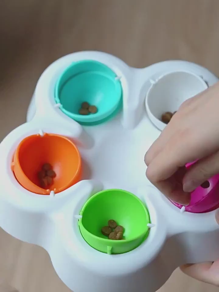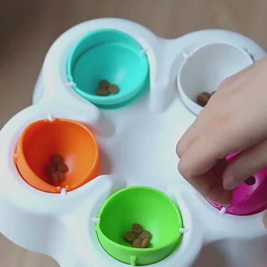 Juguete interactivo tipo puzzle que estimula la mente y promueve una alimentación lenta y divertida. Ideal para usar con premios o concentrado, fabricado en plástico ABS resistente con base antideslizante.
