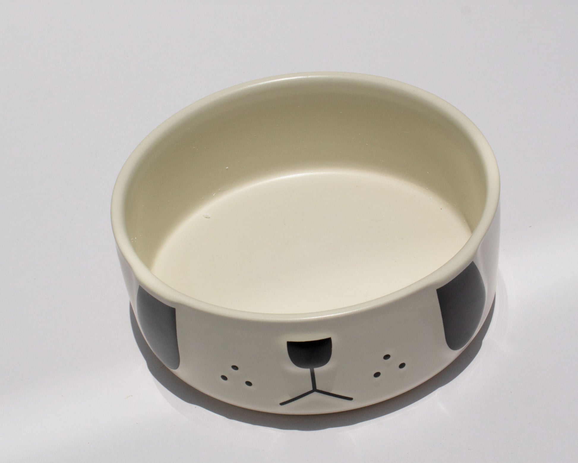 Cuenco de cerámica con diseño de carita de perrito, ideal para agregar un toque divertido y moderno al espacio de tu mascota. Perfecto para perros pequeños y medianos. Material resistente, fácil de lavar y apto para comida seca o húmeda.