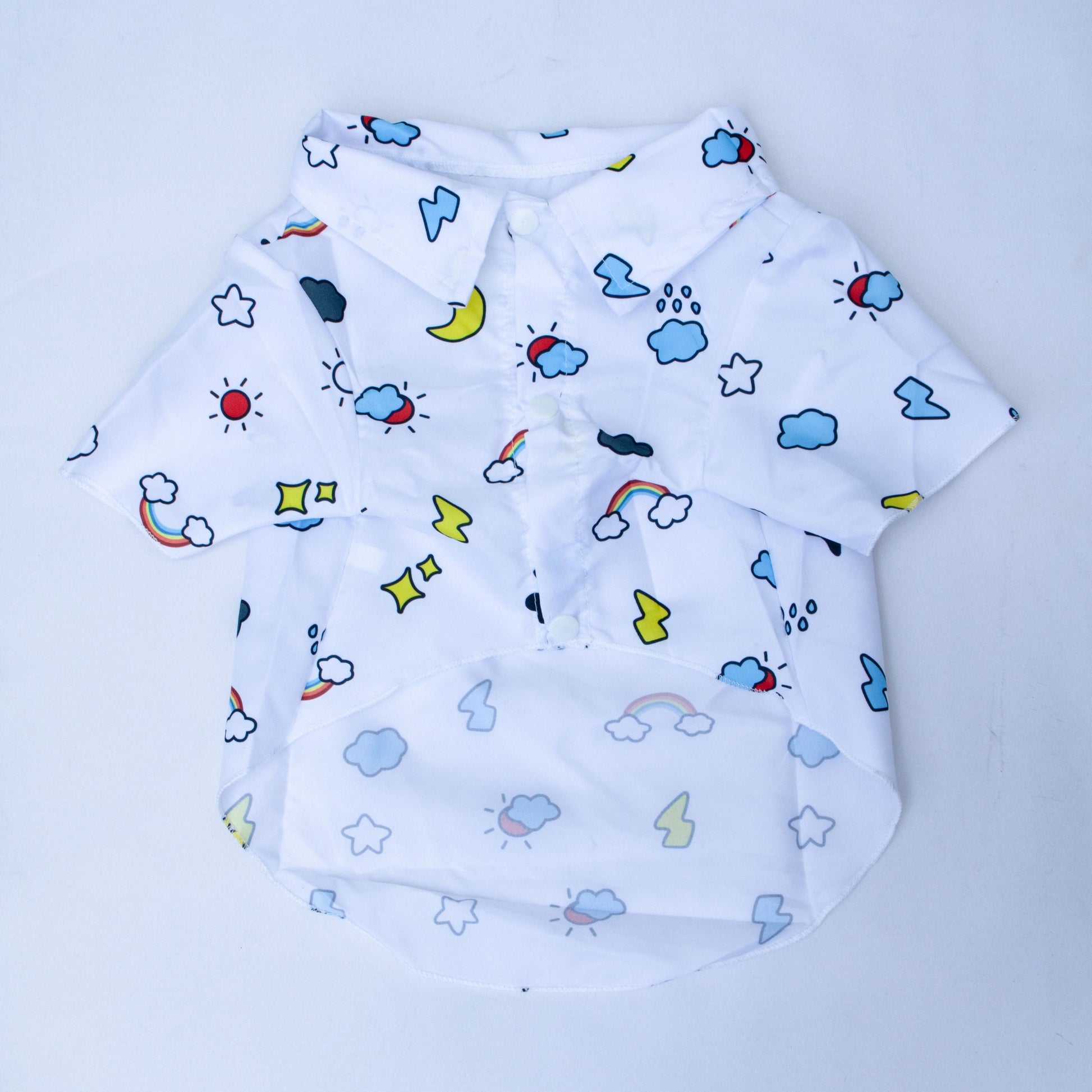 Camisa de poliéster transpirable con estampado de clima alegre. Liviana, cómoda y versátil para uso diario o sesiones de fotos.